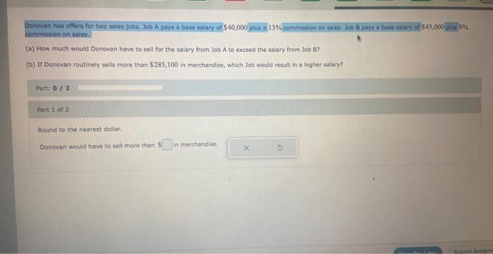 Solved Donovan Has Offers For Two Sales Jobs Job A Pays A Chegg Com
